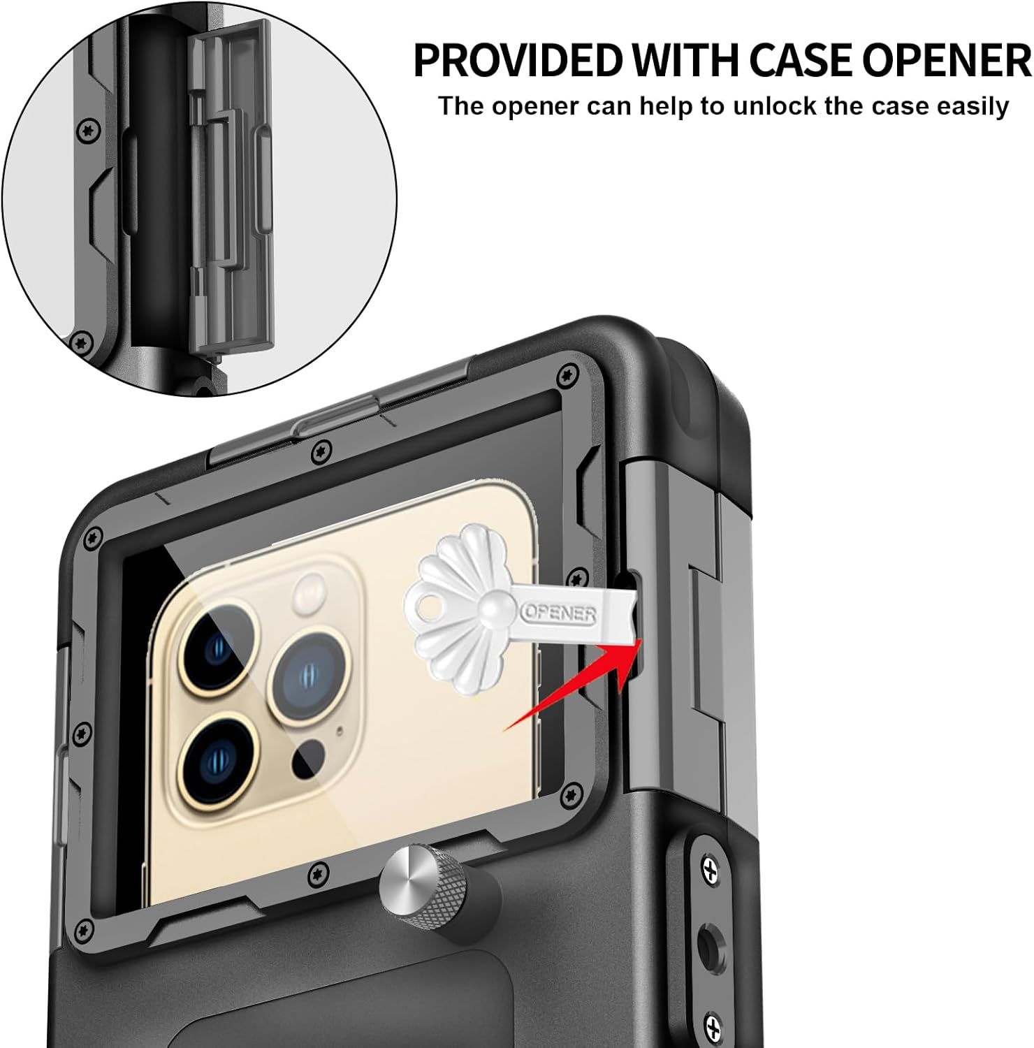 - Robust, solide und wasserdicht - Der Tauchkoffer,dessen Grösse klein ist und der lang bis zu 15 Meter 2 Stunde wasserdicht ist, besteht aus einer dicken PET-Klarfolie plus Verbundkunststoff, einem weichen Bildschirm, ist aber langlebig.