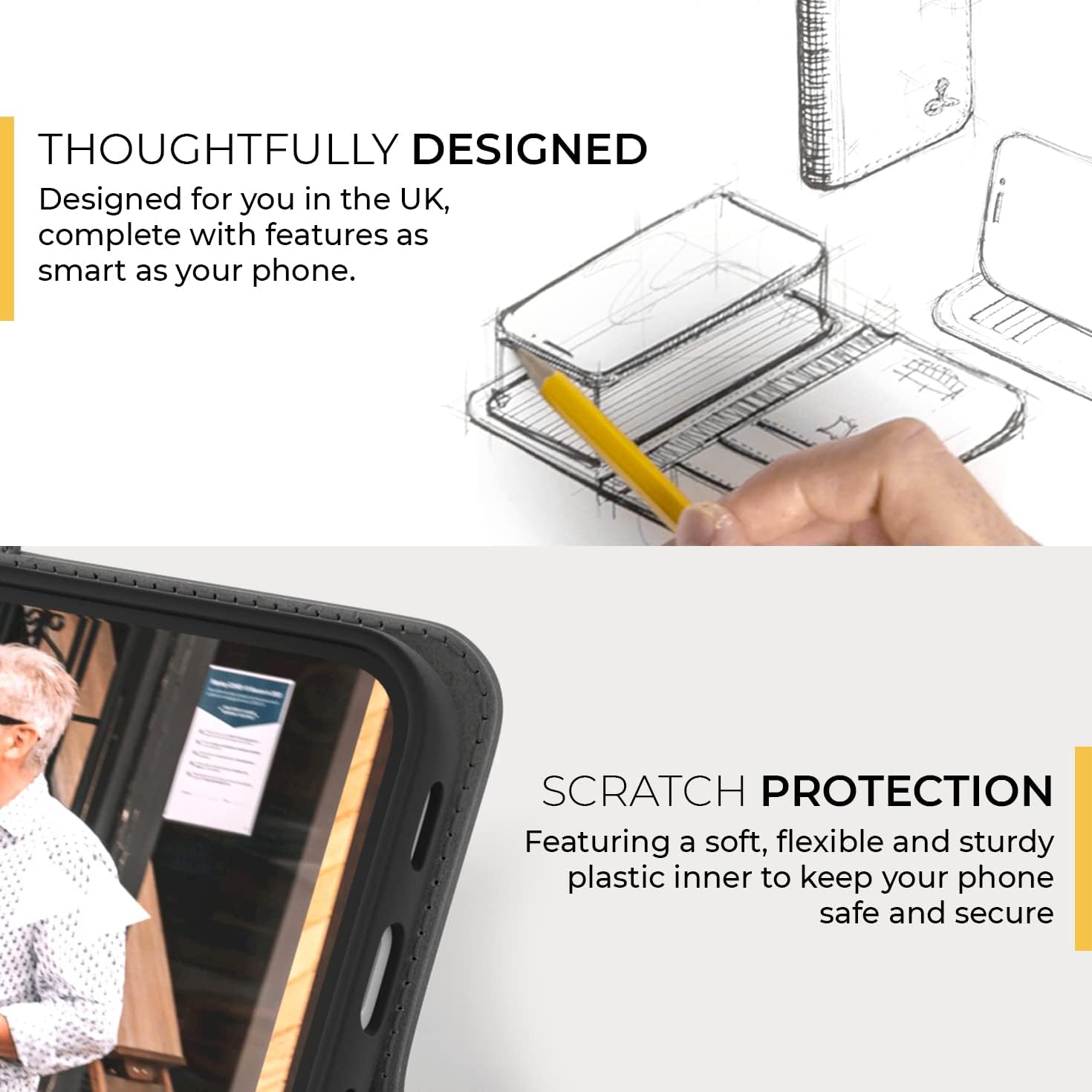 - KOMPLETTER RUNDUM SCHUTZ - Die iPhone 13 Leder Case mit äusserer Lederlippe und flexible Innenseite schützt Dein Smartphone und den herausstehende Kamerabereich optimal vor Stürzen, Kratzern & Dreck