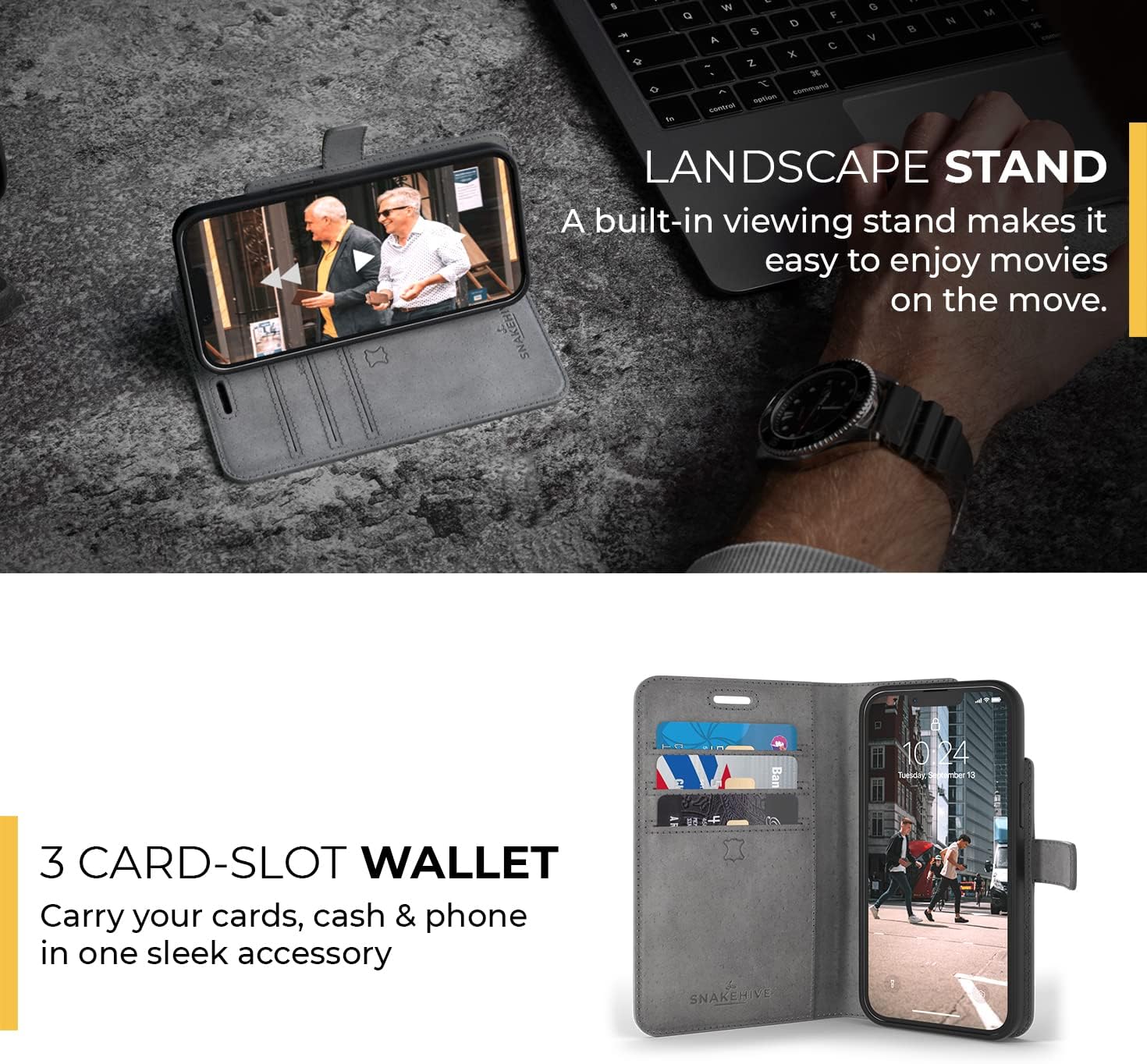 - INKLUSIVE 12 MONATE GARANTIE - Die SNAKEHIVE iPhone 13 Klapphülle aus echtem Leder hat eine 12 Monate lange Garantie. Wenn du nicht zufrieden bist, erhältst Du innerhalb von 30 Tagen Dein Geld zurück