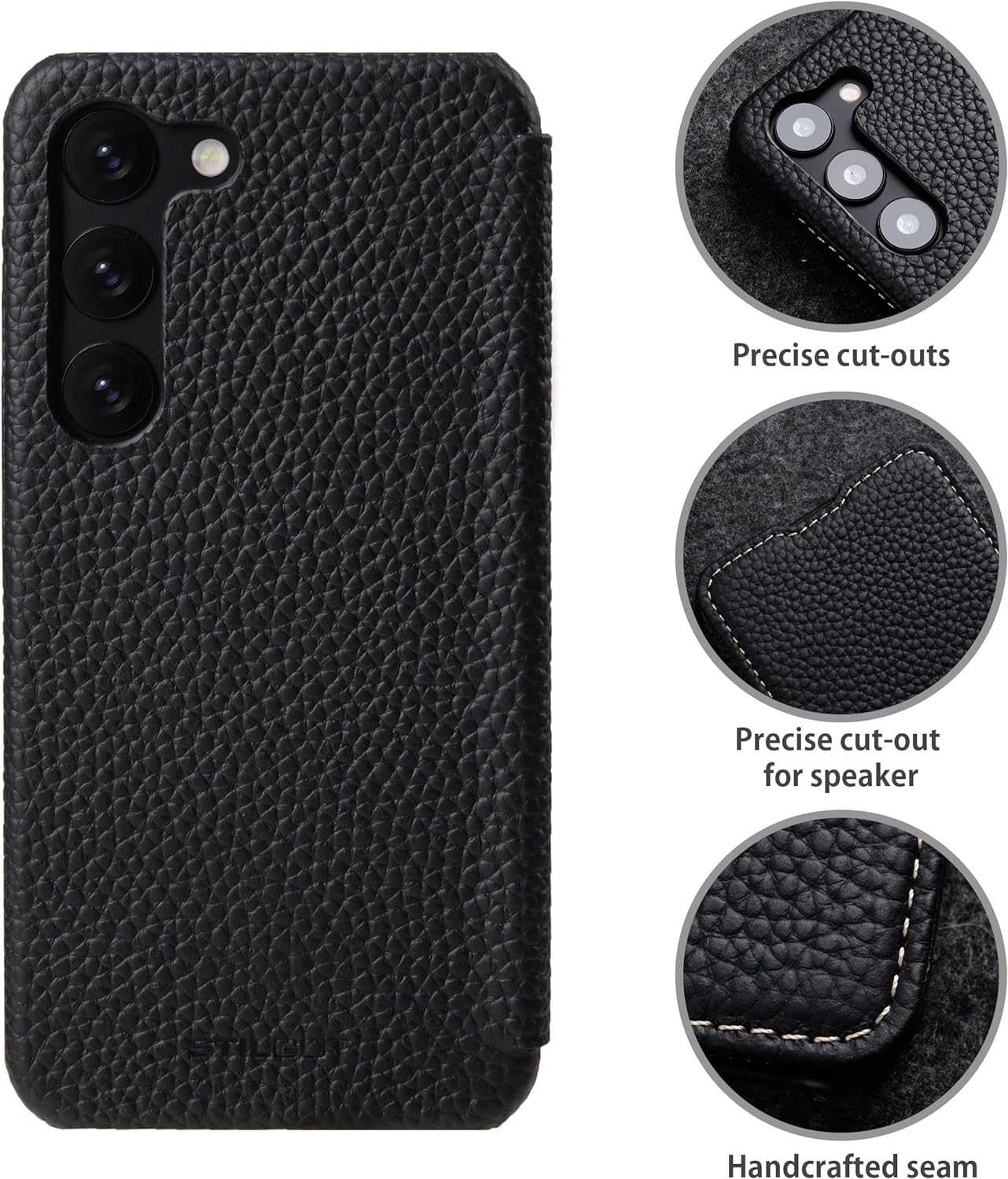 - ✅ OPTIMALER SCHUTZ: Robuste, magnetlose Samsung S23 Lederhülle mit stossfestem, lederbezogenem Hartschalencase für zuverlässigen Schutz vor Kratzern und Abnutzung sowie vor Beschädigung durch Stürze und Stösse