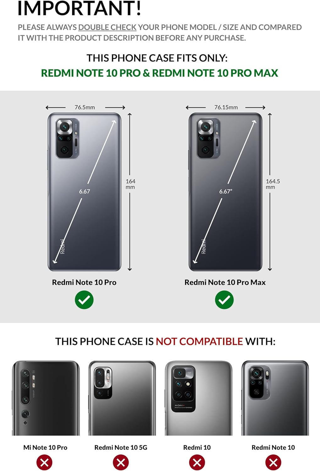 - ✅ KOMPATIBILITÄT - Volle Kompatibilität nur mit Xiaomi Redmi Note 10 Pro & Redmi Note 10 Pro Max (6.67 Zoll) 👈 Vor dem Kauf dieser Handyhülle prüfen Sie zwei Mal Ihr Handy Modell. Speziell entwickelten Ausschnitte und Öffnungen in der Hülle