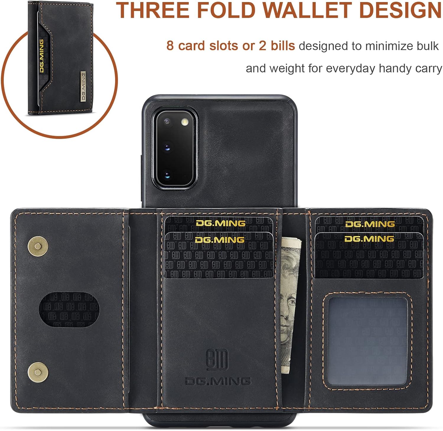 - Hintere Brieftasche: Im Vergleich zu der traditionellen Brieftaschen-Hülle ermöglicht die hintere Brieftasche Ihnen, Ihr Telefon direkt zu verwenden, ohne die Brieftasche zu öffnen. Eine Brieftasche mit grosser Kapazität, die gross genug ist, um all