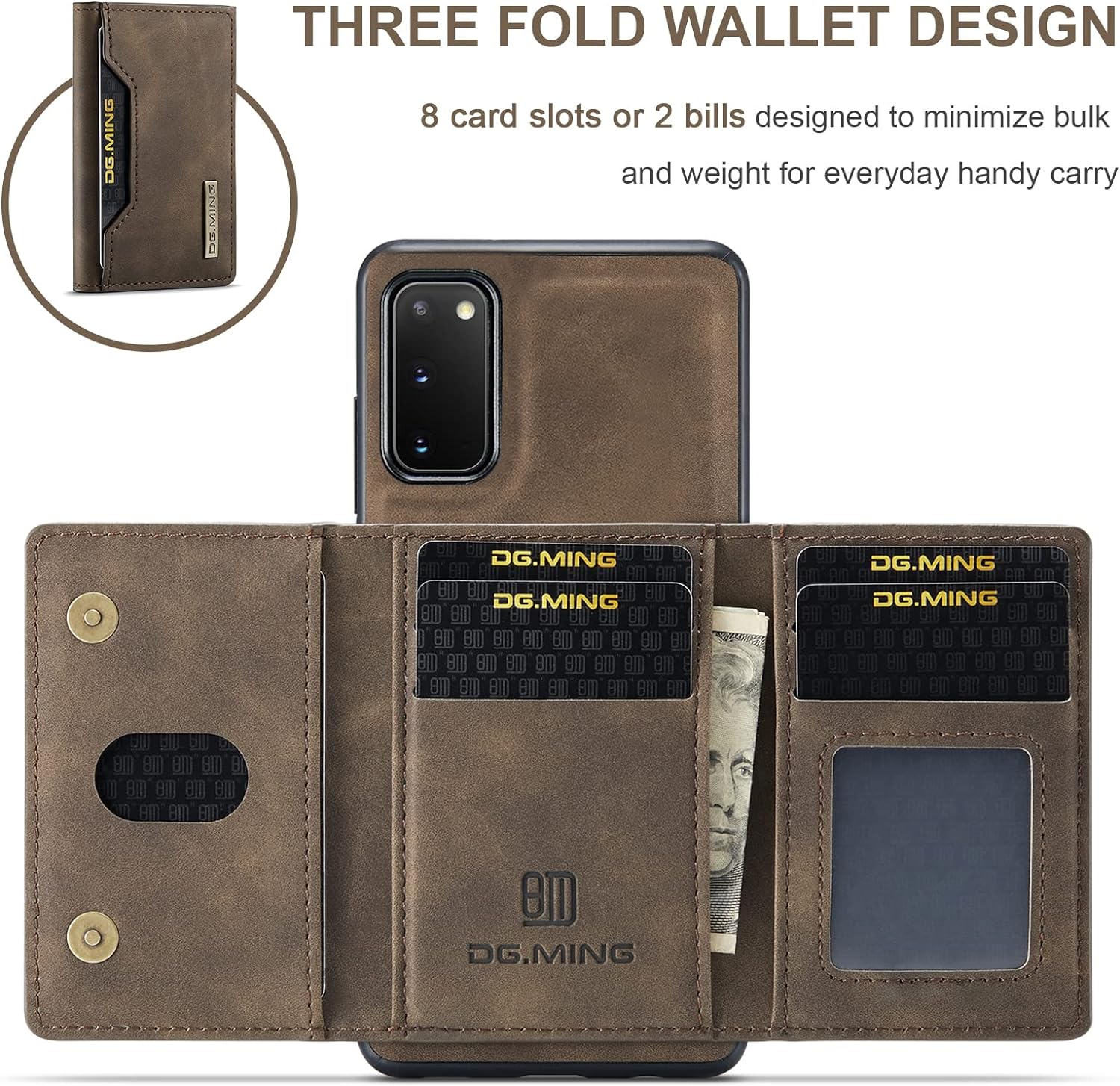 - Hintere Brieftasche: Im Vergleich zu der traditionellen Brieftaschen-Hülle ermöglicht die hintere Brieftasche Ihnen, Ihr Telefon direkt zu verwenden, ohne die Brieftasche zu öffnen. Eine Brieftasche mit grosser Kapazität, die gross genug ist, um all