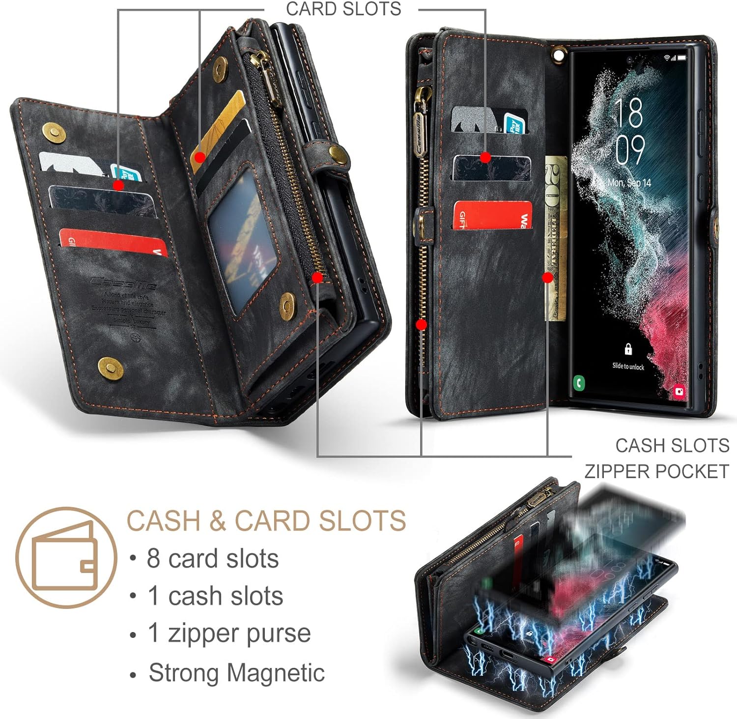 - 【 NEUE UPGRADE-BRIEFTASCHE MULTIFUNKTIONALE HANDYHOLSTER 】 - Multi-Kreditkartenfach, 8 Kartenfächer + Fotorahmen + 1 Geldfach + 1 Reissverschluss-Geldbörse + 2-in-1-Rückentasche. Längerer Reissverschluss, optimiertes dreieckiges Design, mehr