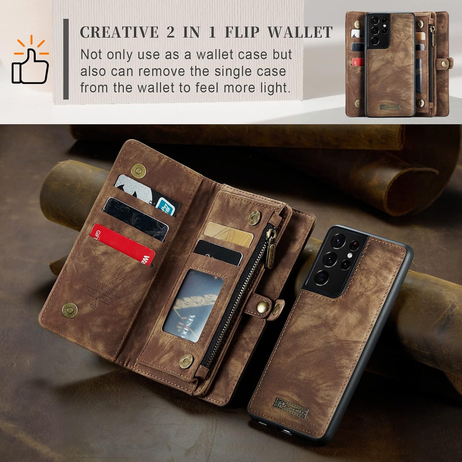 - 【 HINZUGEFÜGTER HANDSCHLAUFE EXQUISITES DESIGN 】 - Es besteht aus hochwertigem doppellagigem Leder und alle. Es hat ein leicht gleitendes Retro-Reissverschluss-Design und liegt gut in der Hand. Präzise Öffnung für eine perfekte Passform. Es