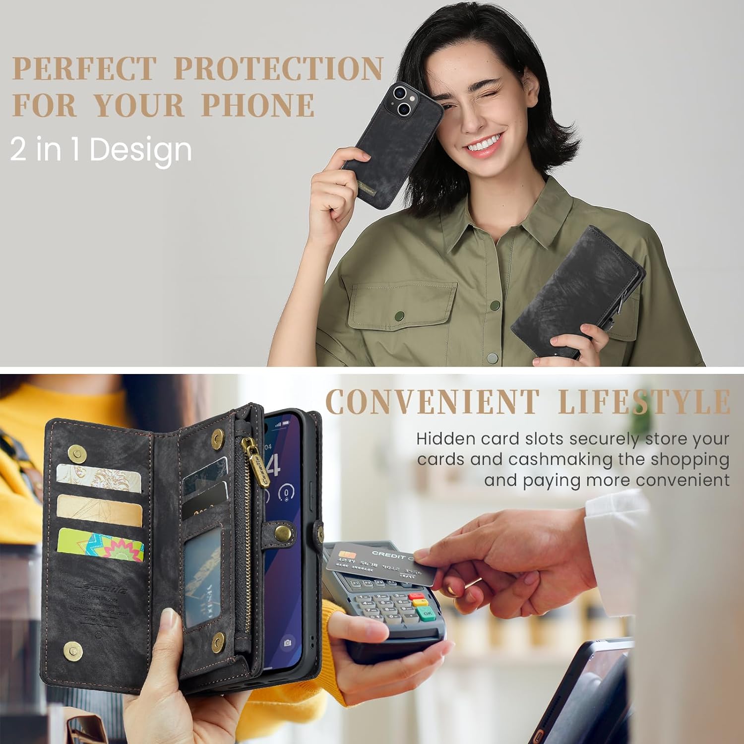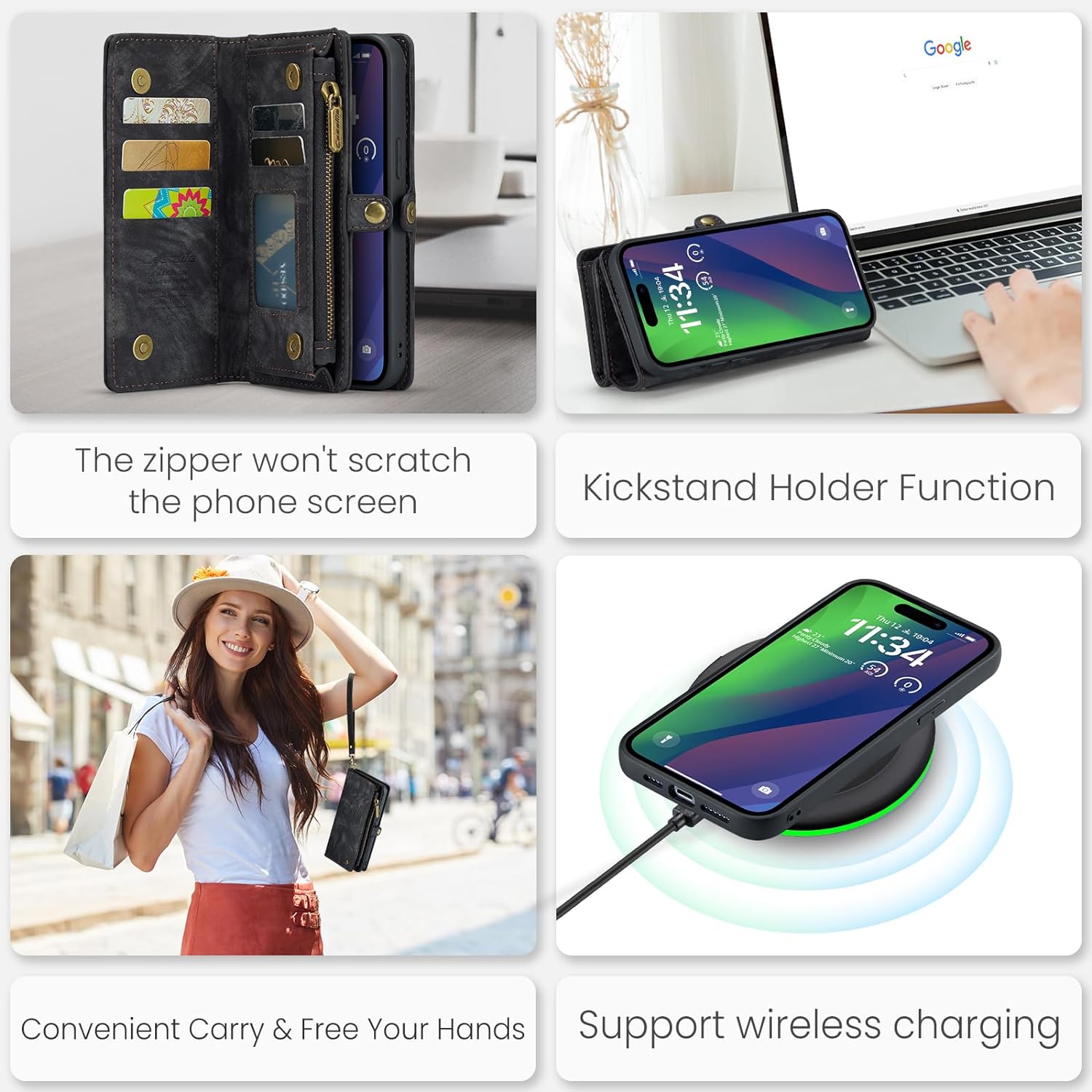 - 【 NEUE UPGRADE-BRIEFTASCHE MULTIFUNKTIONALE HANDYHOLSTER 】 - Multi-Kreditkartenfach, 8 Kartenfächer + Fotorahmen + 1 Geldfach + 1 Reissverschluss-Geldbörse + 2-in-1-Rückentasche. Längerer Reissverschluss, optimiertes dreieckiges Design, mehr