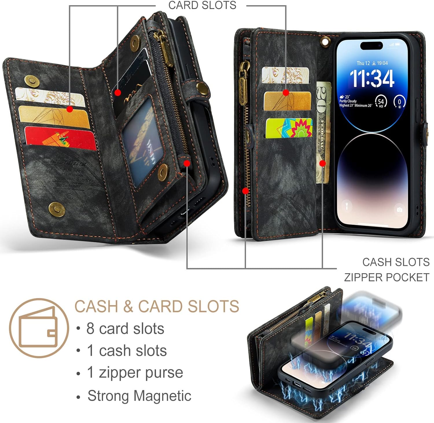 - 【 NEUE UPGRADE-BRIEFTASCHE MULTIFUNKTIONALE HANDYHOLSTER 】 - Multi-Kreditkartenfach, 8 Kartenfächer + Fotorahmen + 1 Geldfach + 1 Reissverschluss-Geldbörse + 2-in-1-Rückentasche. Längerer Reissverschluss, optimiertes dreieckiges Design, mehr