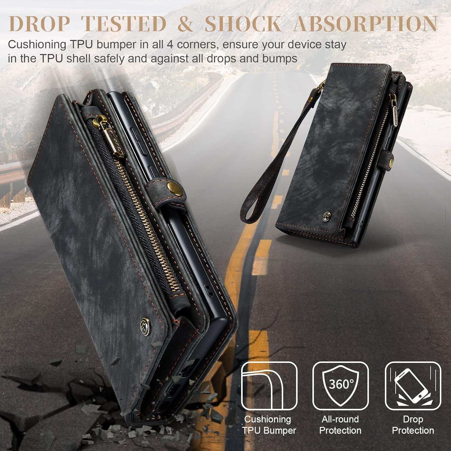 - 【 HINZUGEFÜGTER HANDSCHLAUFE EXQUISITES DESIGN 】 - Es besteht aus hochwertigem doppellagigem Leder und alle. Es hat ein leicht gleitendes Retro-Reissverschluss-Design und liegt gut in der Hand. Präzise Öffnung für eine perfekte Passform. Es