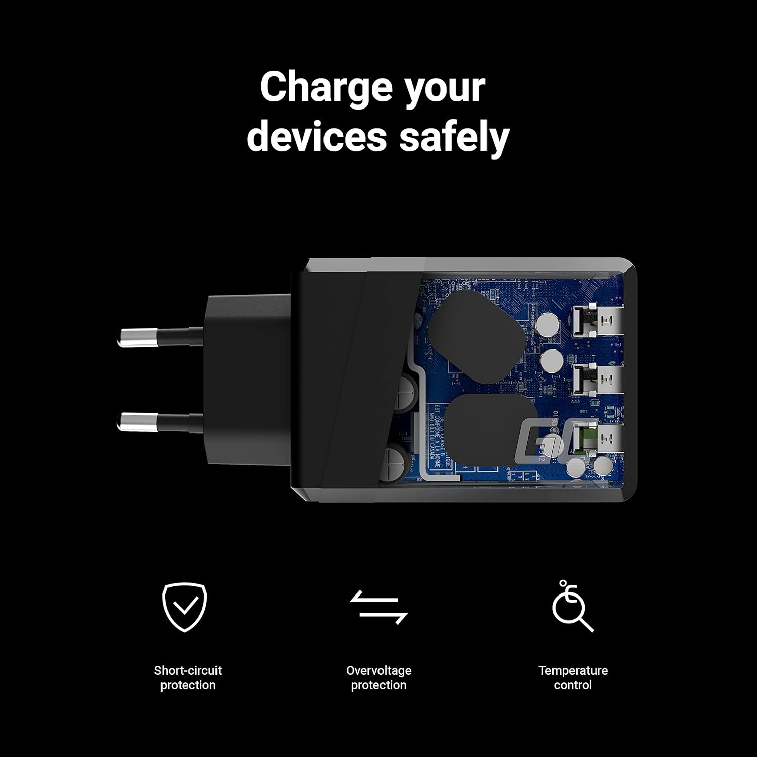 - Sicheres Aufladen Ihrer Geräte: Überspannungsschutz, Kurzschluss-Schutz, Temperaturregelung