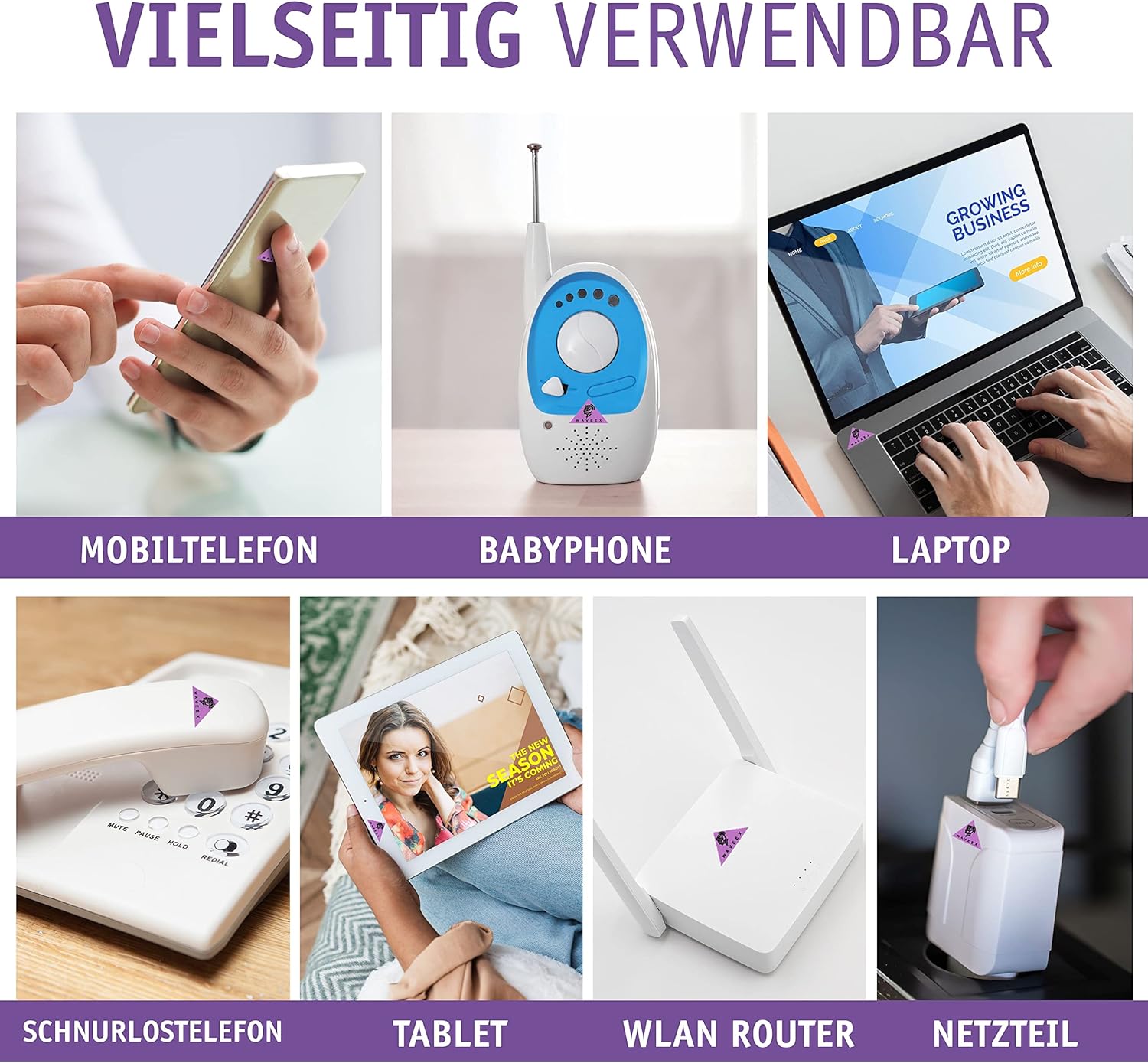 - SYMPTOMVERRINGERUNG: Mit dem speziellen Aufkleber lassen sich eventuell auftretende, durch elektromagnetische Strahlungen erzeugte Symptome wie Stress, Schlafstörungen, Konzentrations- und Merkschwächen, Kopfschmerzen und weitere Symptome verringern.