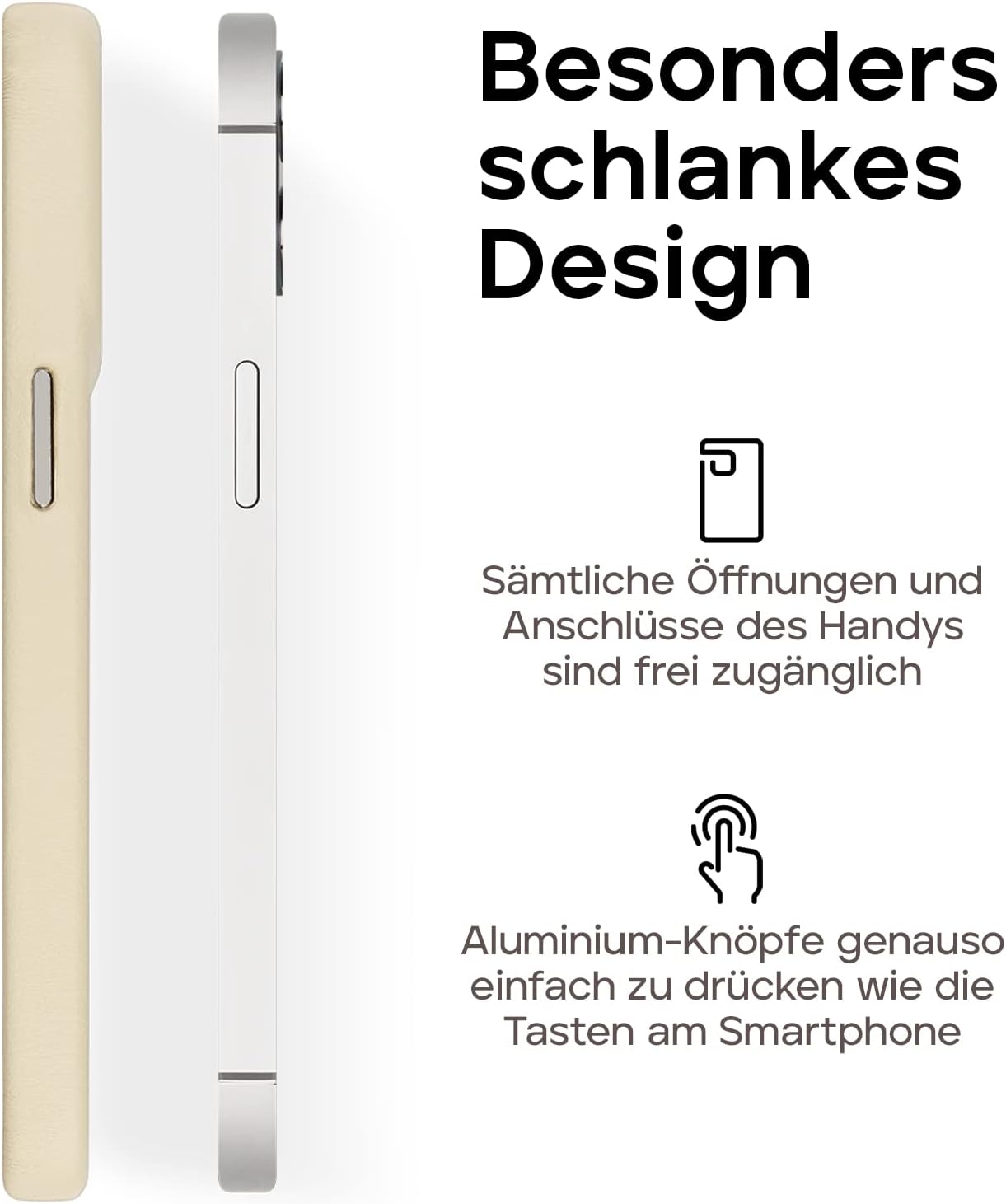 - HIGHLIGHTS: Angenehmes weiches Echtleder aus Deutschland; Edles dünnes Design; 100% passgenau für das Apple iPhone 13 mini; Innen weiches Mikrofaser gegen Kratzer und Staub; unterstützt kabelloses Laden (Qi) & kompatibel mit MagSafe