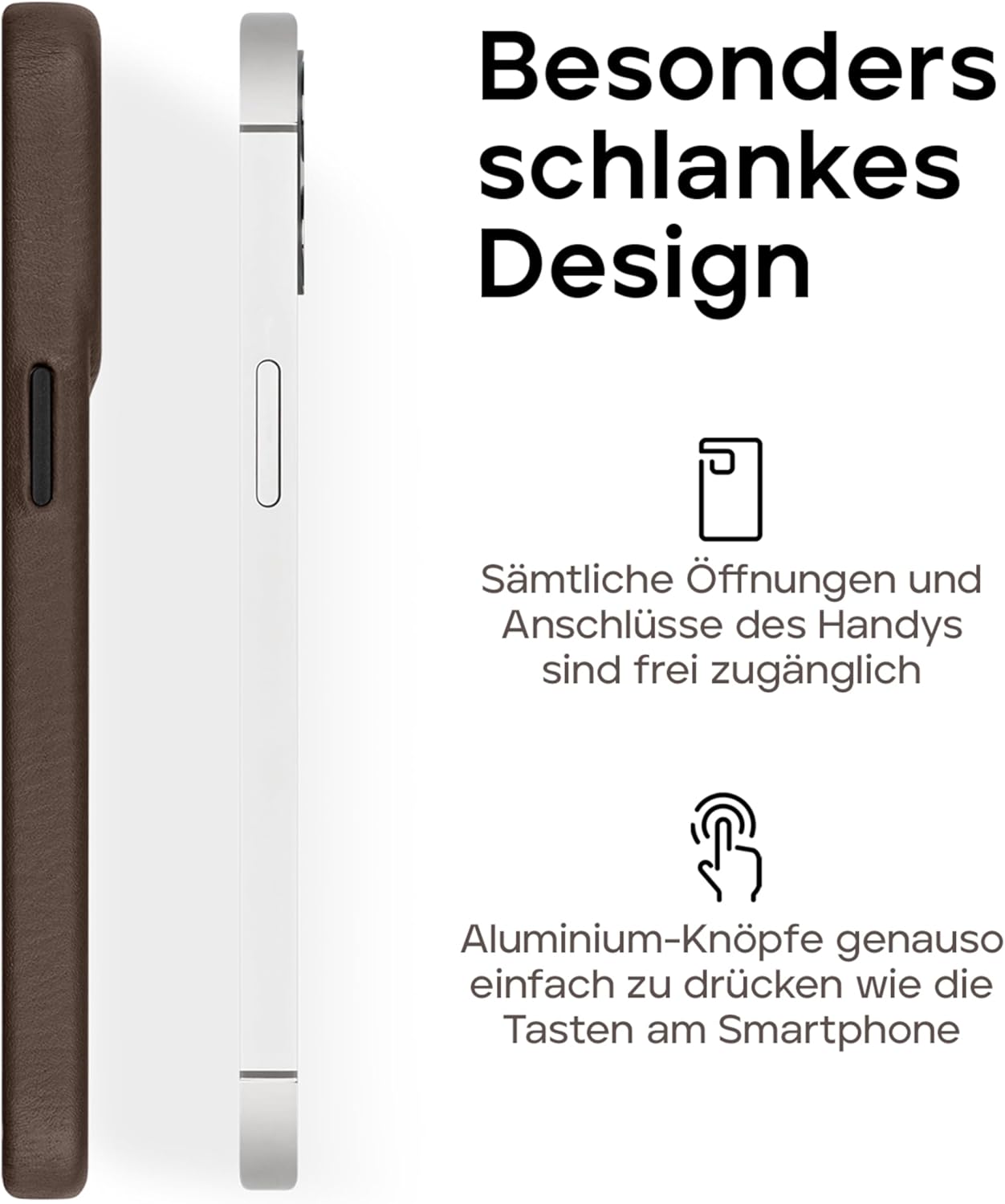 - HIGHLIGHTS: Angenehmes weiches Echtleder aus Deutschland; Edles dünnes Design; 100% passgenau für das Apple iPhone 14; Innen weiches Mikrofaser gegen Kratzer und Staub; unterstützt kabelloses Laden (Qi) & kompatibel mit MagSafe