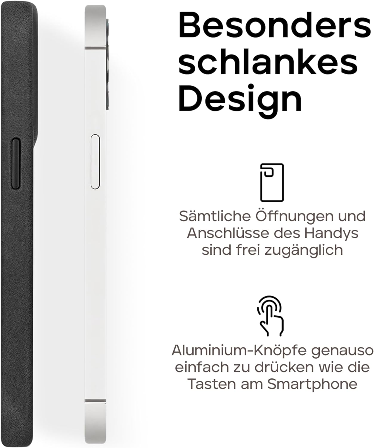 - HIGHLIGHTS: Angenehmes weiches Echtleder aus Deutschland; Edles dünnes Design; 100% passgenau für das Apple iPhone 14 Pro Max; Innen weiches Mikrofaser gegen Kratzer und Staub; unterstützt kabelloses Laden (Qi) & kompatibel mit MagSafe