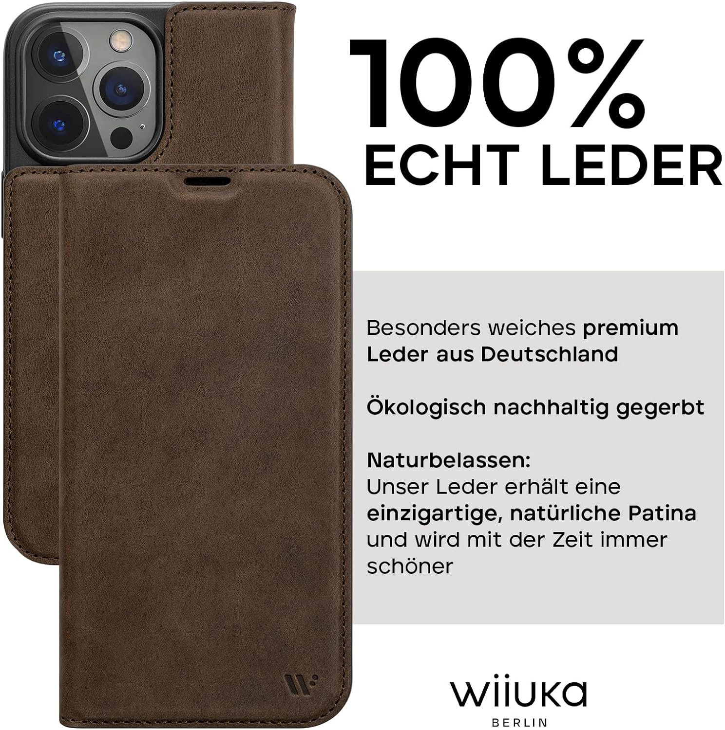 - 100% ECHT LEDER: Die WIIUKA Lederhülle für das iPhone 14 Pro Max, ist aus samtig, weichem Nubuk Leder aus Deutschland gefertigt. Lassen Sie sich von dem angenehm dezent duftenden Leder überzeugen.
