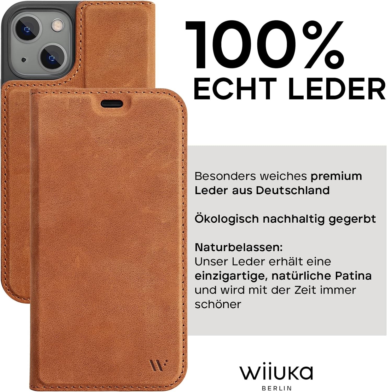 - 100% ECHT LEDER: Die WIIUKA Lederhülle für das iPhone 15, ist aus samtig, weichem Nubuk Leder aus Deutschland gefertigt. Lassen Sie sich von dem angenehm dezent duftenden Leder überzeugen.