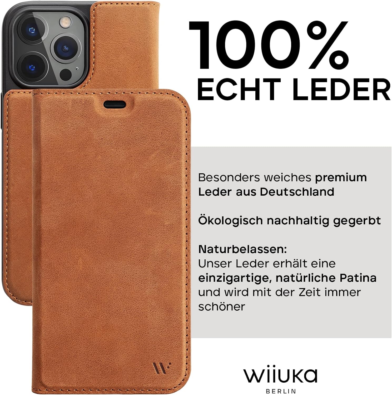 - 100% ECHT LEDER: Die WIIUKA Lederhülle für das iPhone 15 Pro, ist aus samtig, weichem Nubuk Leder aus Deutschland gefertigt. Lassen Sie sich von dem angenehm dezent duftenden Leder überzeugen.