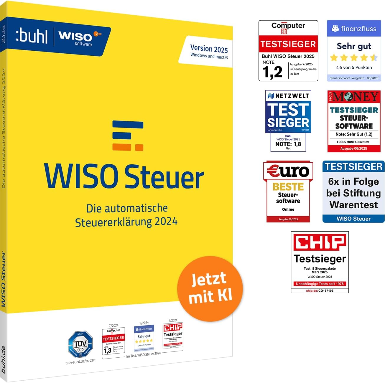 - WISO Steuer 2025; sofortige Anzeige der Erstattung/Nachzahlung, Rechner für Gehalt, Abfindung, Erbschaft, Kfz-Steuer, Riester uvm; kostenloser Telefonsupport
