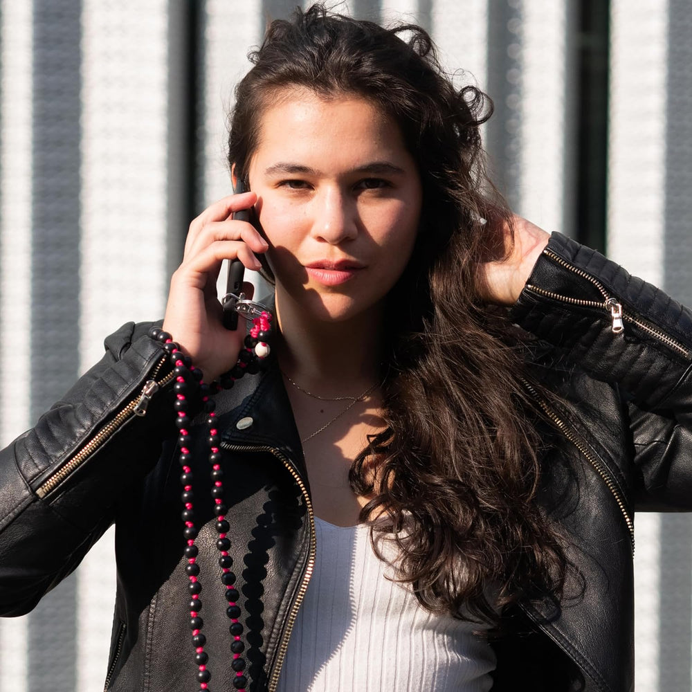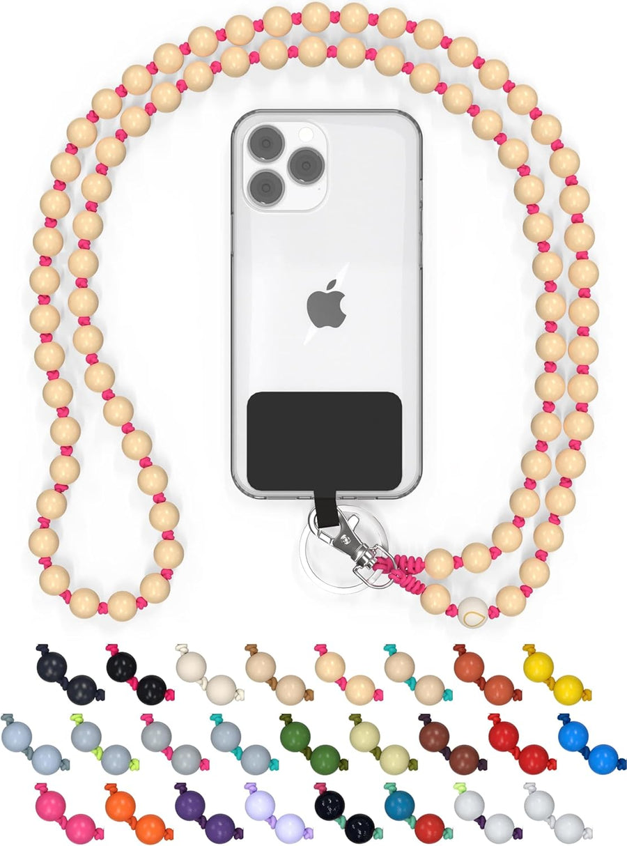 DROPLETSY Holzperlen Handykette universal, Schlüsselband, Kette, Necklace zum Umhängen - kompatibel
