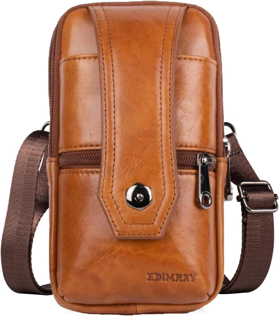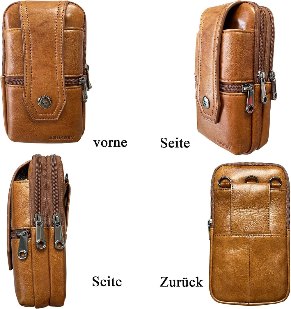 EDIMRAY Herren Gürteltasche Leder Kleine Handytasche Zum Umhängen 7.68zoll Echtleder Vintage Handy H