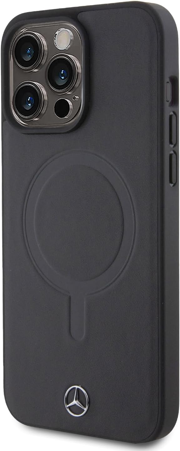 CG MOBILE Mercedes-Benz Handyhülle kompatibel mit Magsafe und iPhone 15 Pro Max in Schwarz, Echtlede