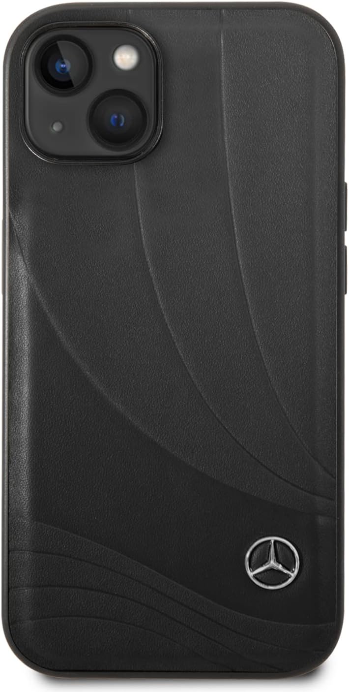 CG MOBILE Mercedes-Benz Handyhülle für iPhone 14 Plus in schwarzem Wellenmuster, Echtleder-Schutzhül