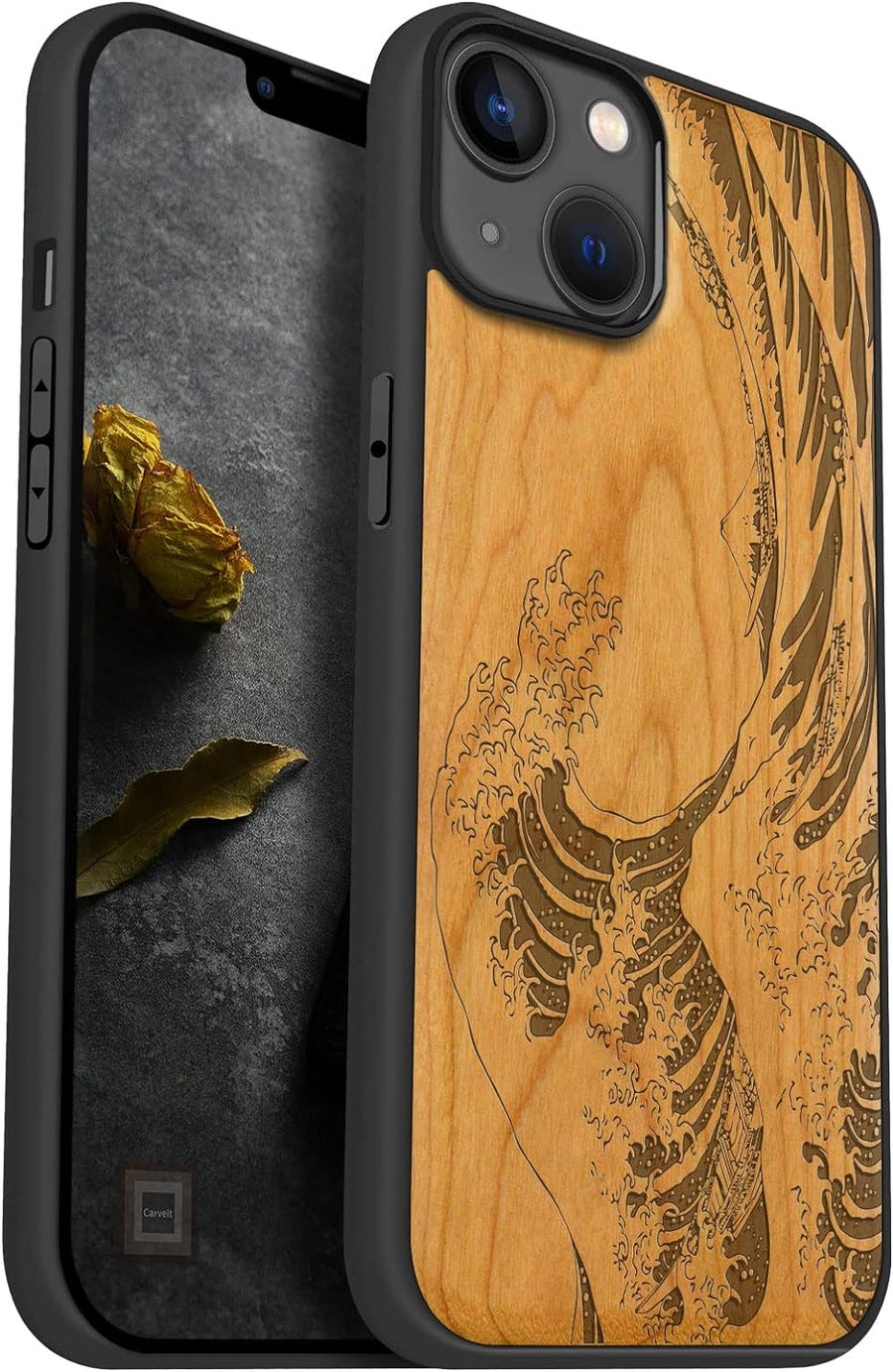 Carveit Handyhülle für iPhone 14 Holz Cover kompatibel mit MagSafe Massivholz für Apple 14 Stossfest