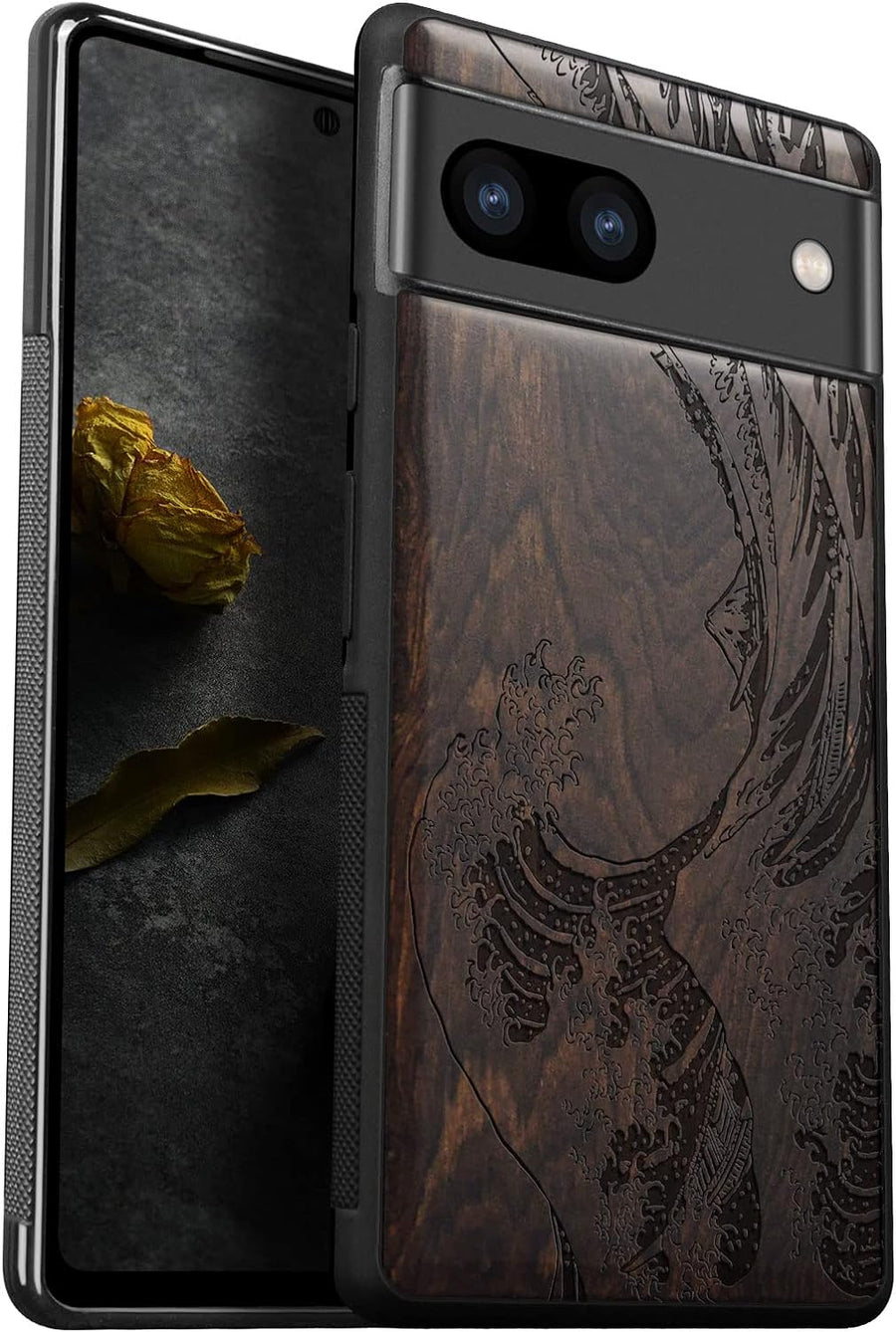 Carveit Holz Handyhülle für Google Pixel 7a Cover [Einzigartiges Design Case] Stossstange hülle Komp