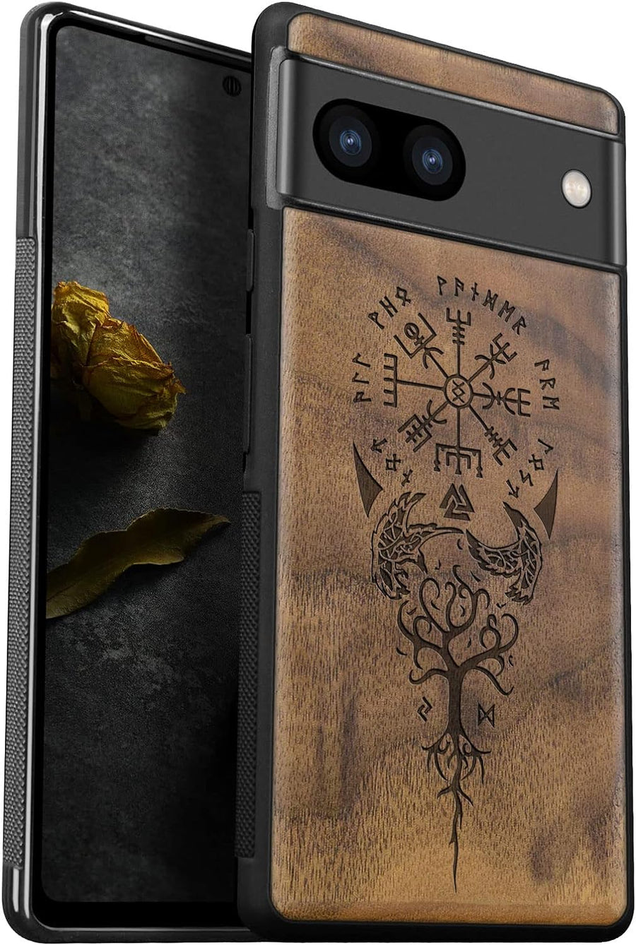 Carveit Holz Handyhülle für Google Pixel 7 Cover [Einzigartiges Design Case] Stossstange hülle Kompa
