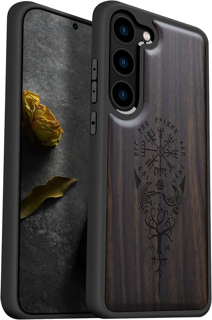 Carveit Handyhülle für Galaxy S23 Case [Holz und TPU Silikon Hybrid hülle] Stossfeste Stossstange ha