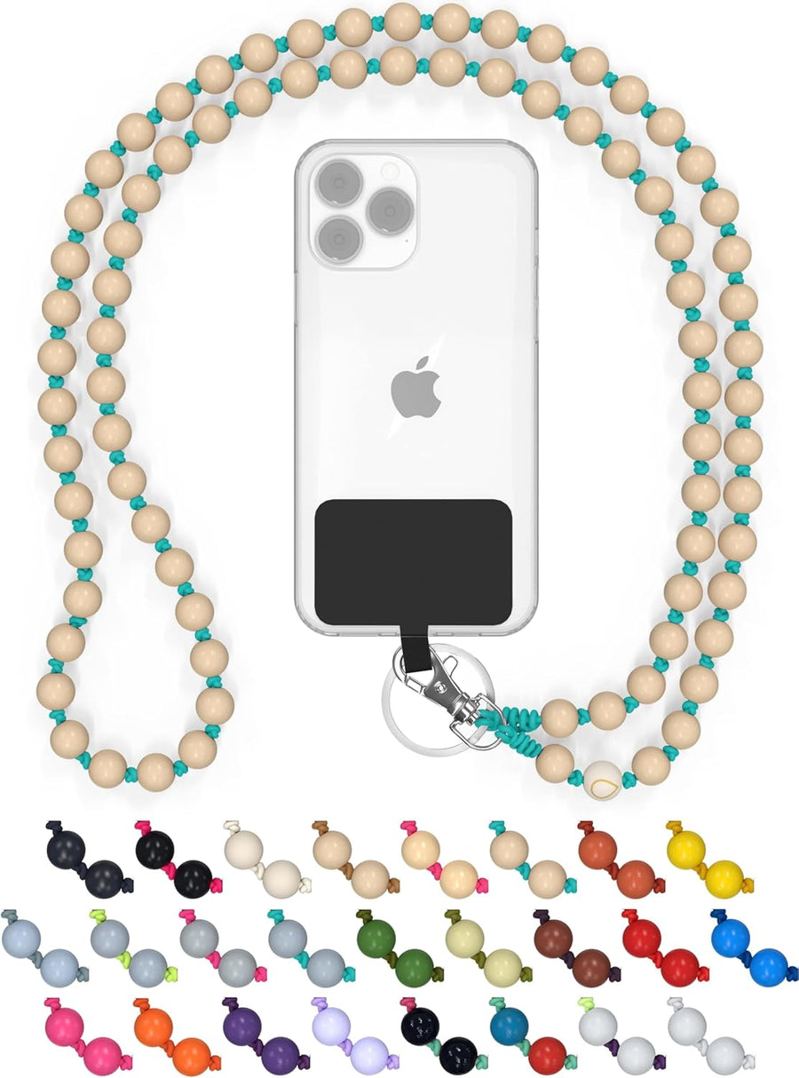 DROPLETSY Holzperlen Handykette universal, Schlüsselband, Kette, Necklace zum Umhängen - kompatibel