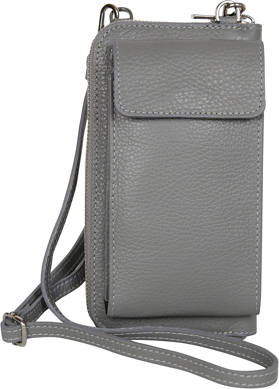 AmbraModa GLX21 - multifunktionale Damen Handytasche, Umhängetasche, Geldbörse aus echtem Leder, gee