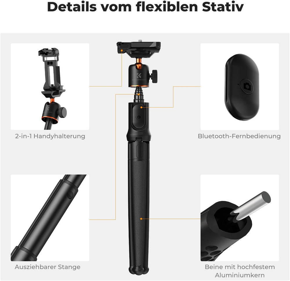 Handy Stativ,K&F Concept Flexibles Stativ für Smartphone & Kamera,MS29 Einziehbarer Selfie Stick,Min