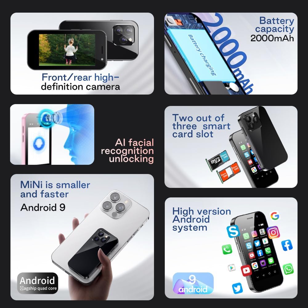 ZOKOE Mini Handy Smartphone für Kinder 3-Zoll-Bildschirm 2600 mAh 3GB RAM 64GB ROM 2.0+5.0MP Gesicht