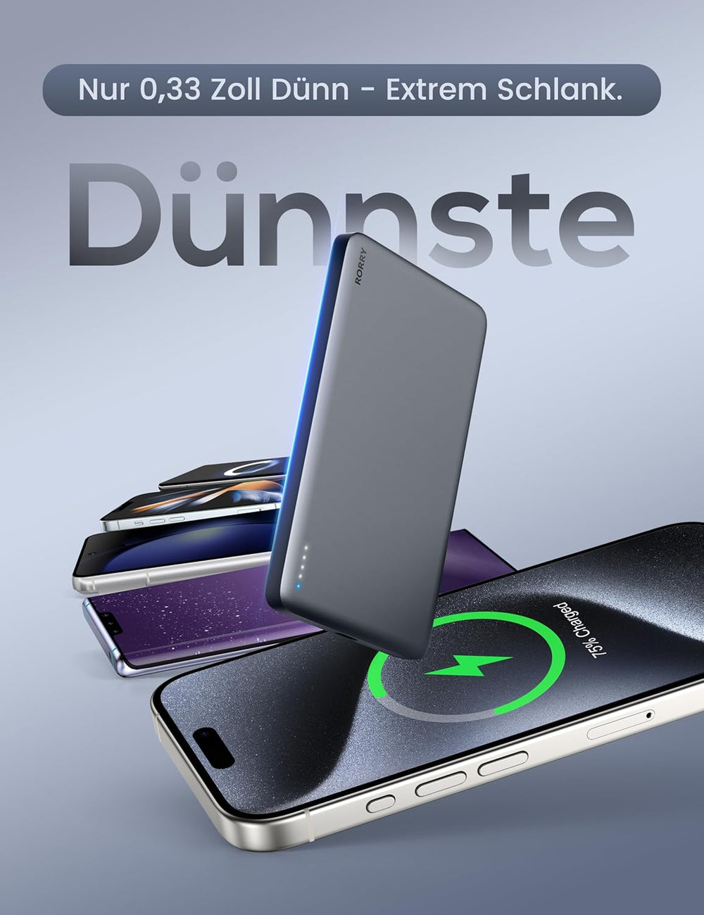 RORRY Power Bank für Magsafe, 5000mAh PD 18W 8.6mm Tragbares Magnetisch Powerbank, Externe Handy Akk