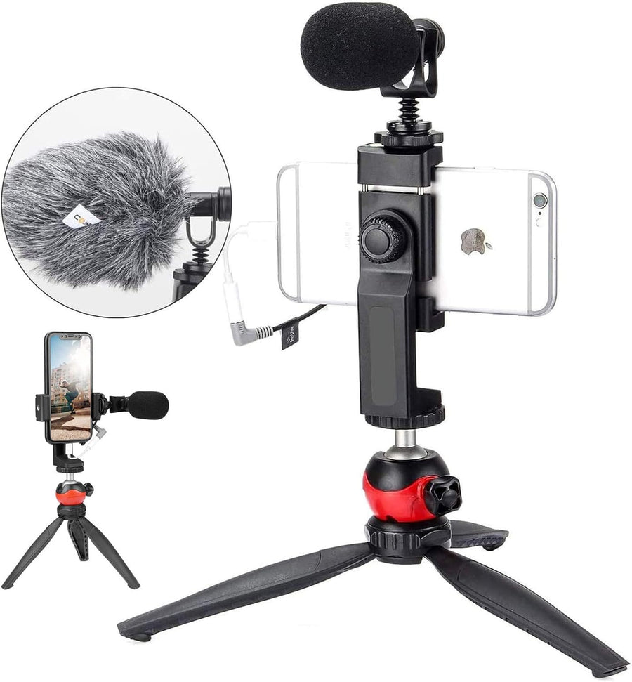 EACHSHOT Richtmikrofon Kamera Mikrofon mit Tischstativ Handyhalterung, Shotgun DSLR Video Externes M