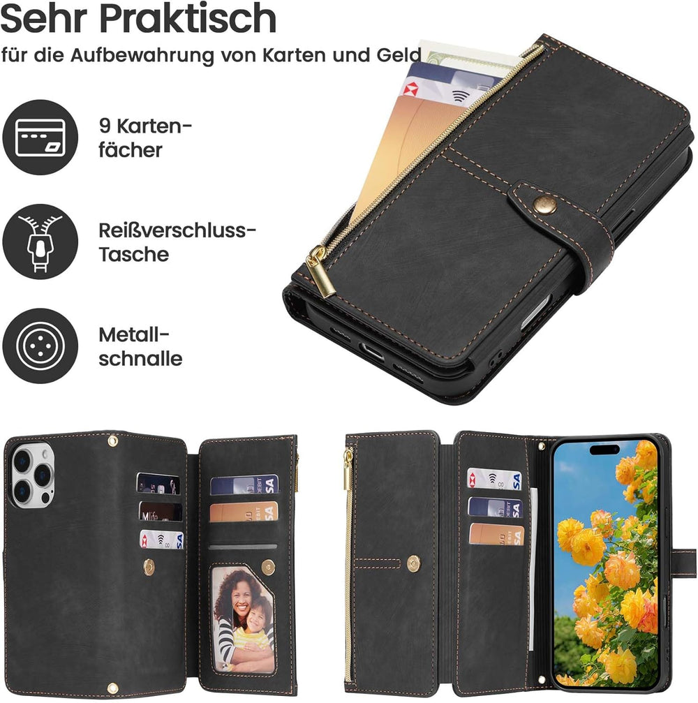 ZCDAYE iPhone 16 Pro Hülle mit Band, Leder iPhone 16 Pro Handykette Handyhülle Handytasche mit Korde
