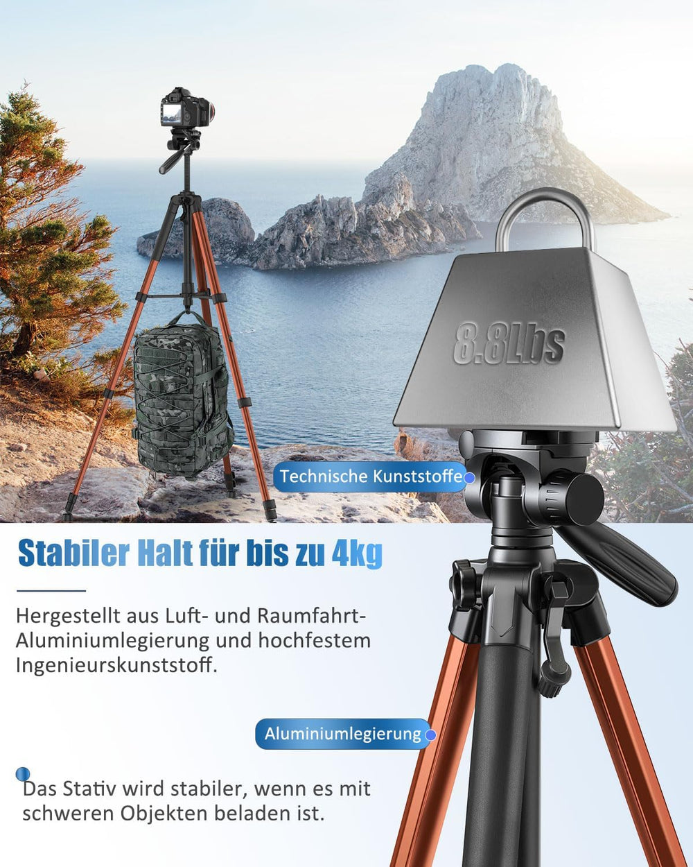 Fotopro Kamera Stativ Handy Stativ, 140CM Aluminium Leichtstativ für Reisen, 360-Grad-Panorama-Aufna