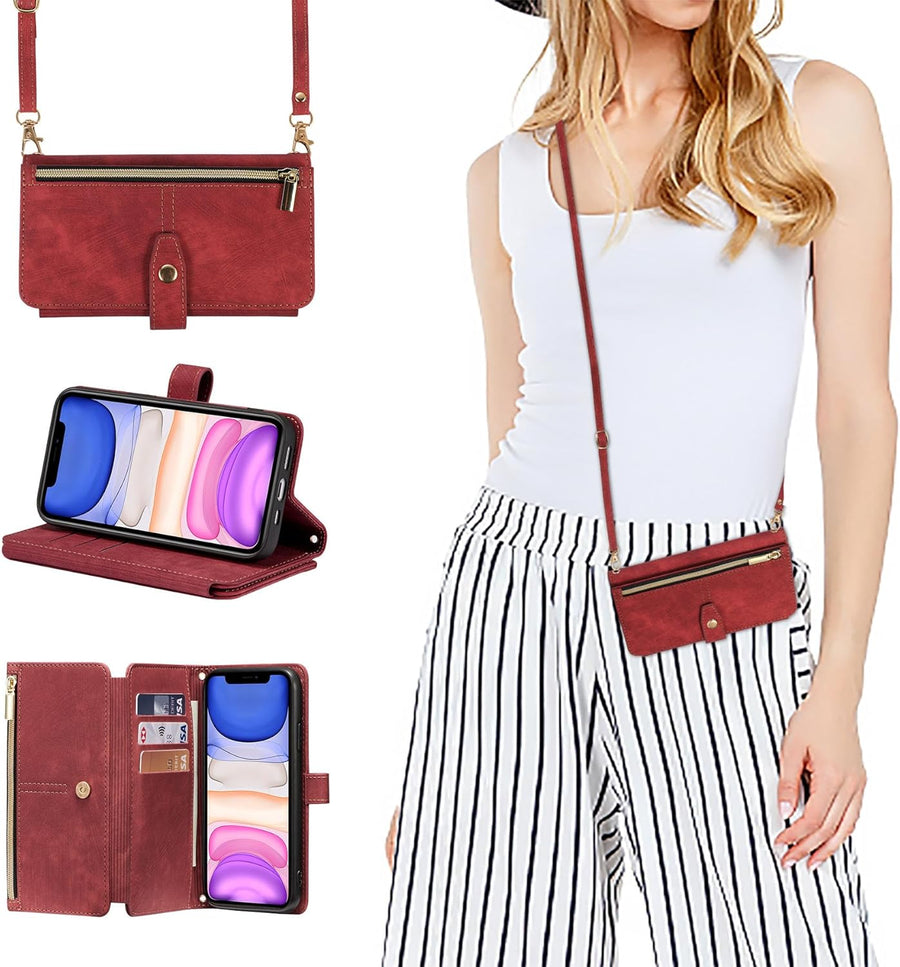 ZCDAYE iPhone 11 Hülle mit Band, Leder iPhone 11 Handytasche Handyhülle Praktische Handykette Karten