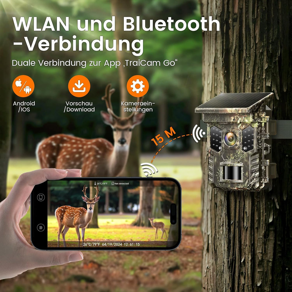 Coolifepro Wildkamera mit Handyübertragung App, 48MP 30FPS Solar WLAN Wildkamera, Wildtierkamera Ein