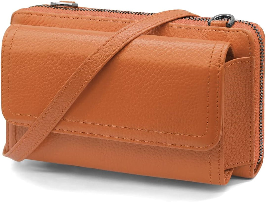 YERUUE Kleine Handy Umhängetasche, Damen Kleine Umhängetasche RFID Schutz Geldbeutel Echtes Leder Cr