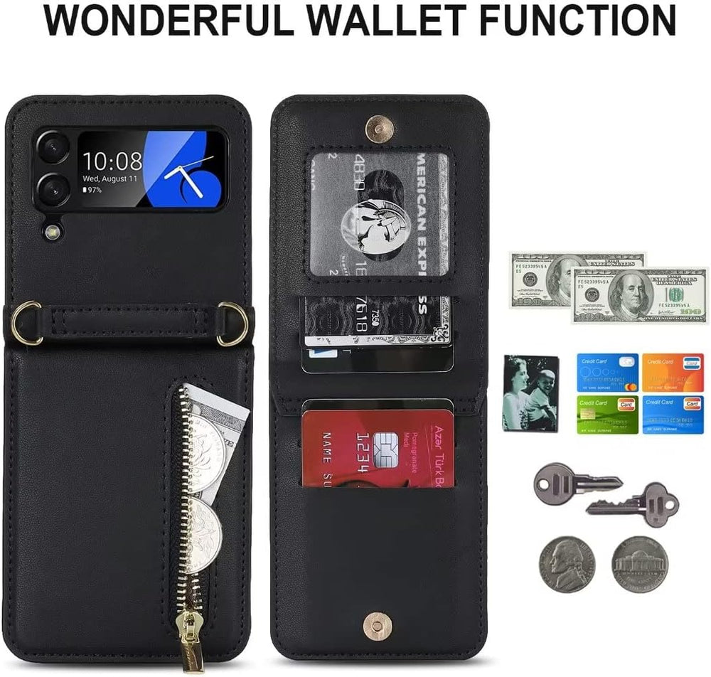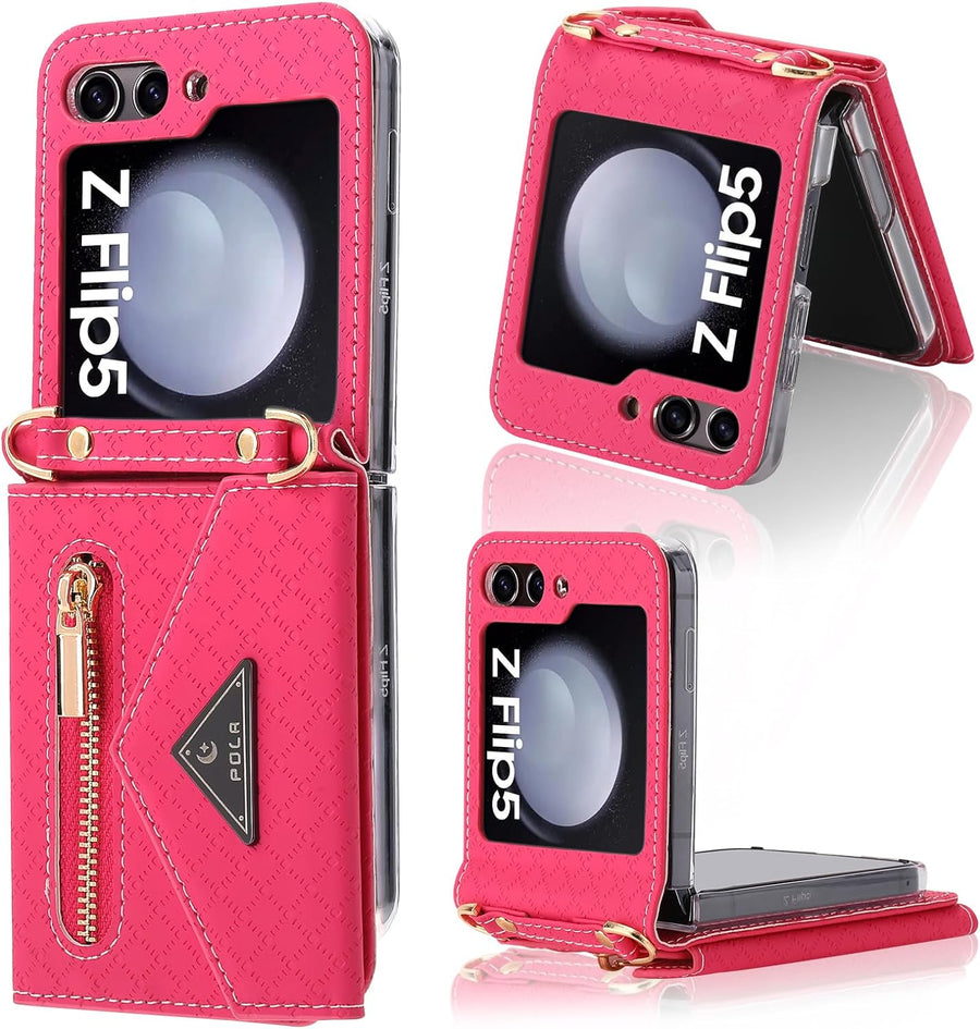 XIMAND Schutzhülle für Z Flip mit Reissverschluss, rote Handyhülle mit Riemen für Samsung Galaxy Z F