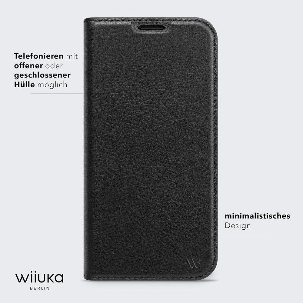 WIIUKA Hülle für iPhone 13, Deutsches Leder, Lederhülle extra Dünn, Premium Handyhülle, Case, Qi, Sc