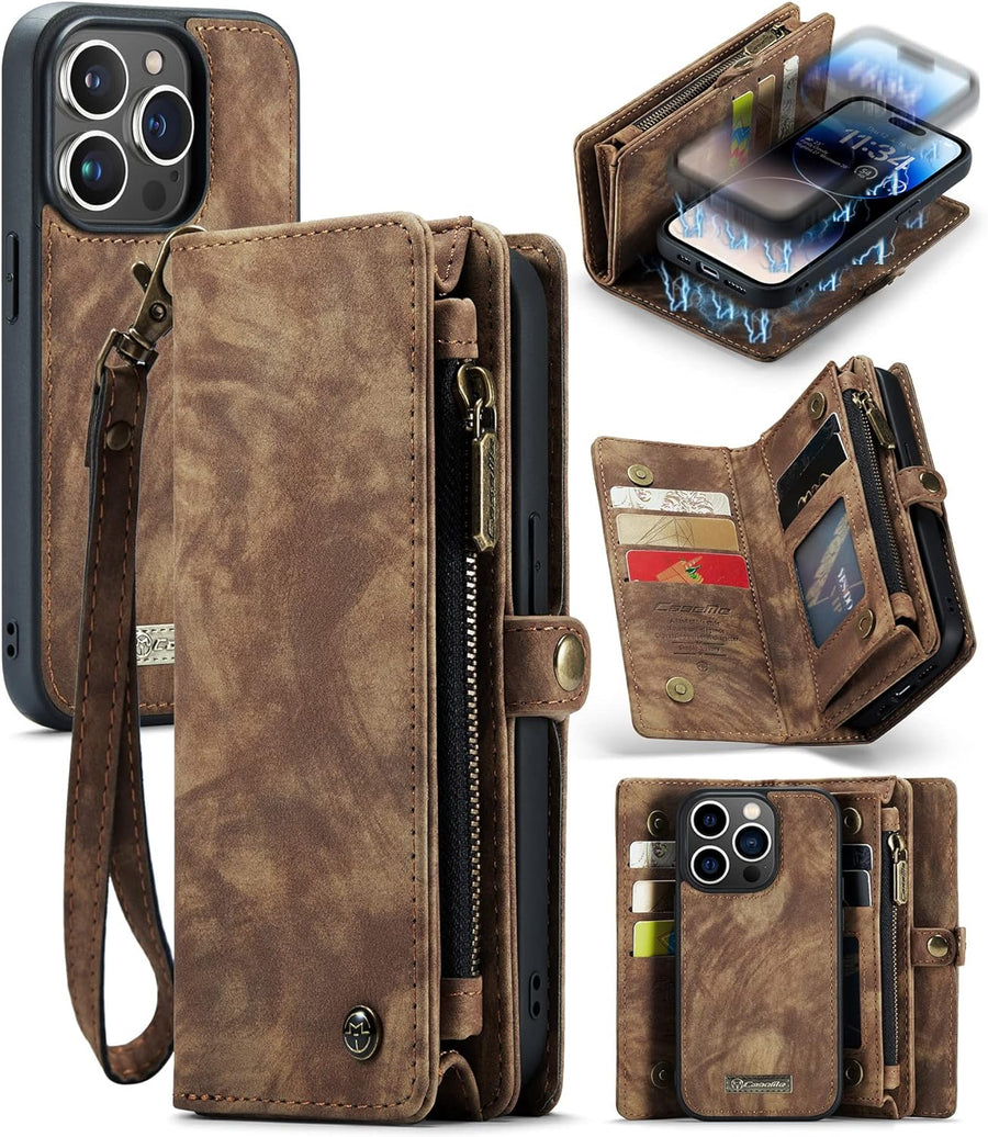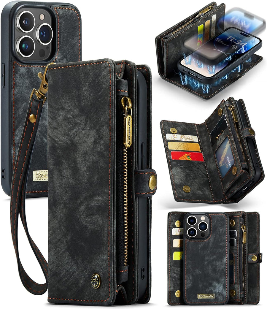UFinetech iPhone 14 Pro Max Hülle, Flip Leder TPU Stossfeste Kartenfach Tasche Handyhülle iPhone 14