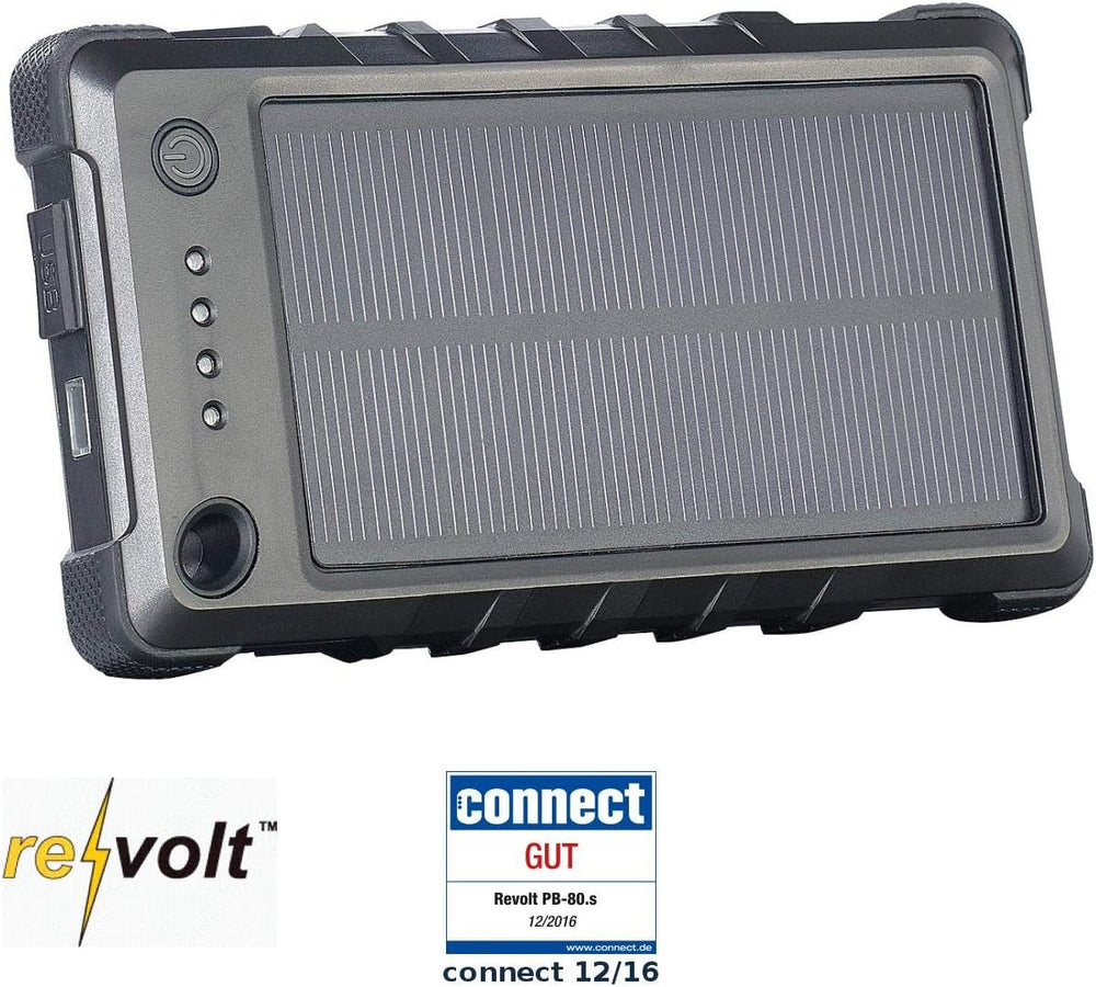 revolt Solar Powerbank Handy: Wetter- & stossfeste Solar-Powerbank PB-80.s mit 8.000 mAh, IP65 (USB