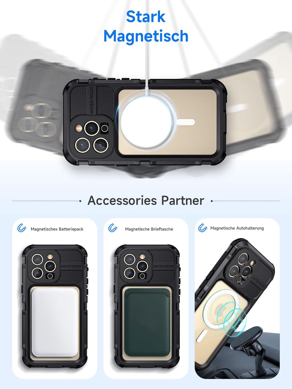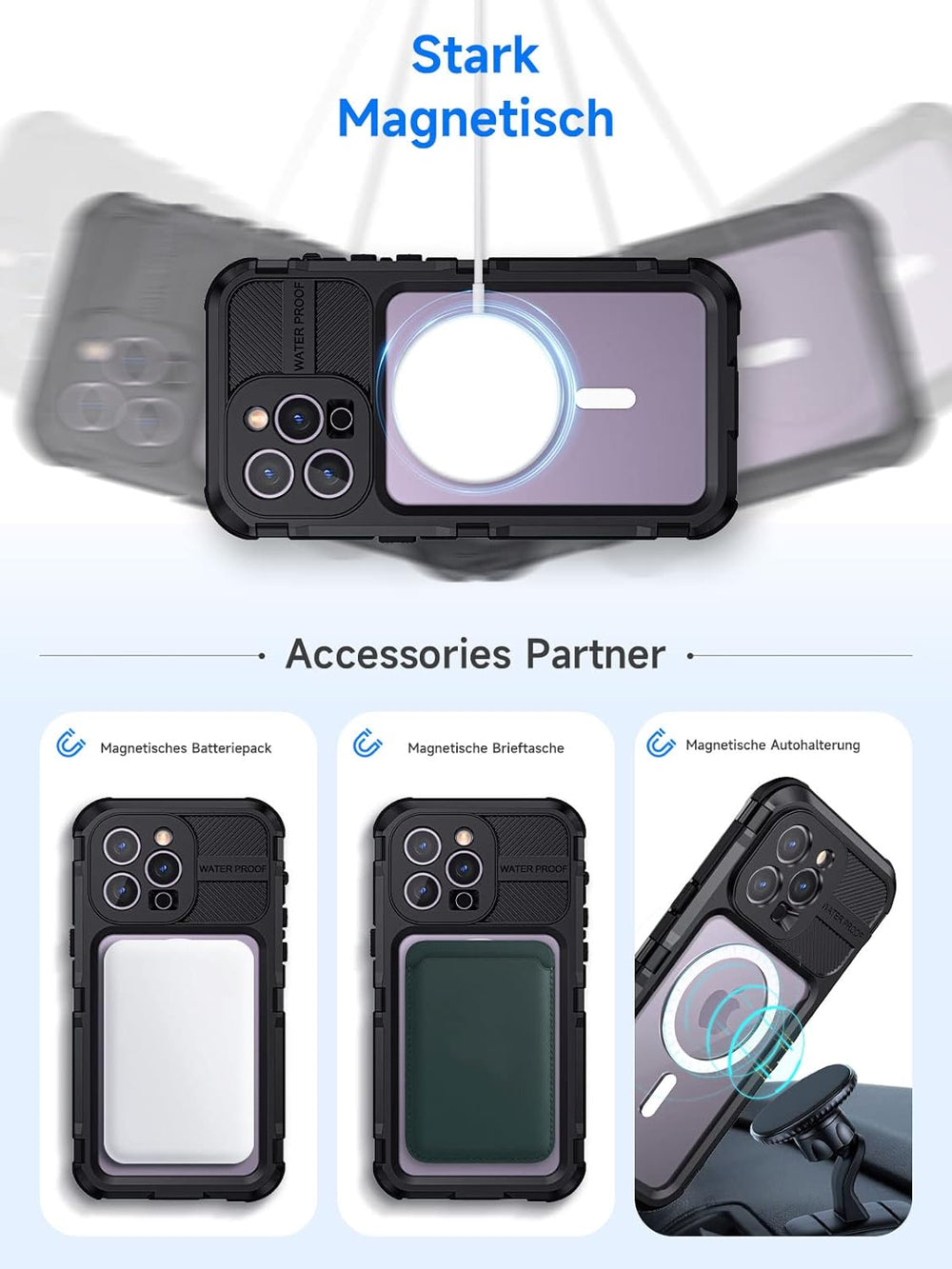 seacosmo für iPhone 14 Pro Max Hülle Wasserdicht [Kompatibel mit Magsafe] Metall Handyhülle iPhone 1