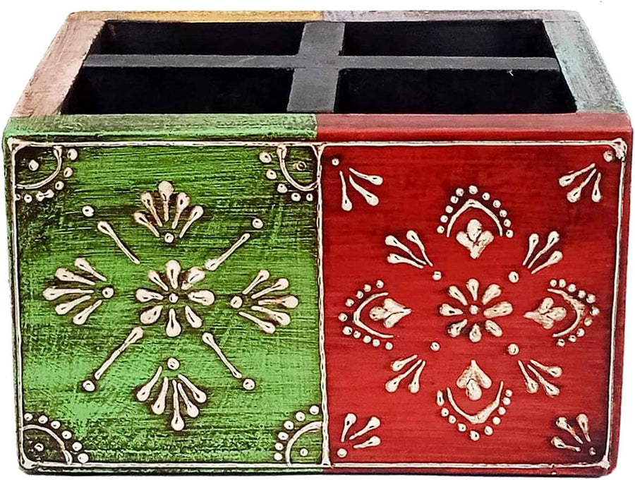Purpledip Schreibtisch-Organizer aus Holz für Stifte, Handy oder Visitenkarten, handbemalt