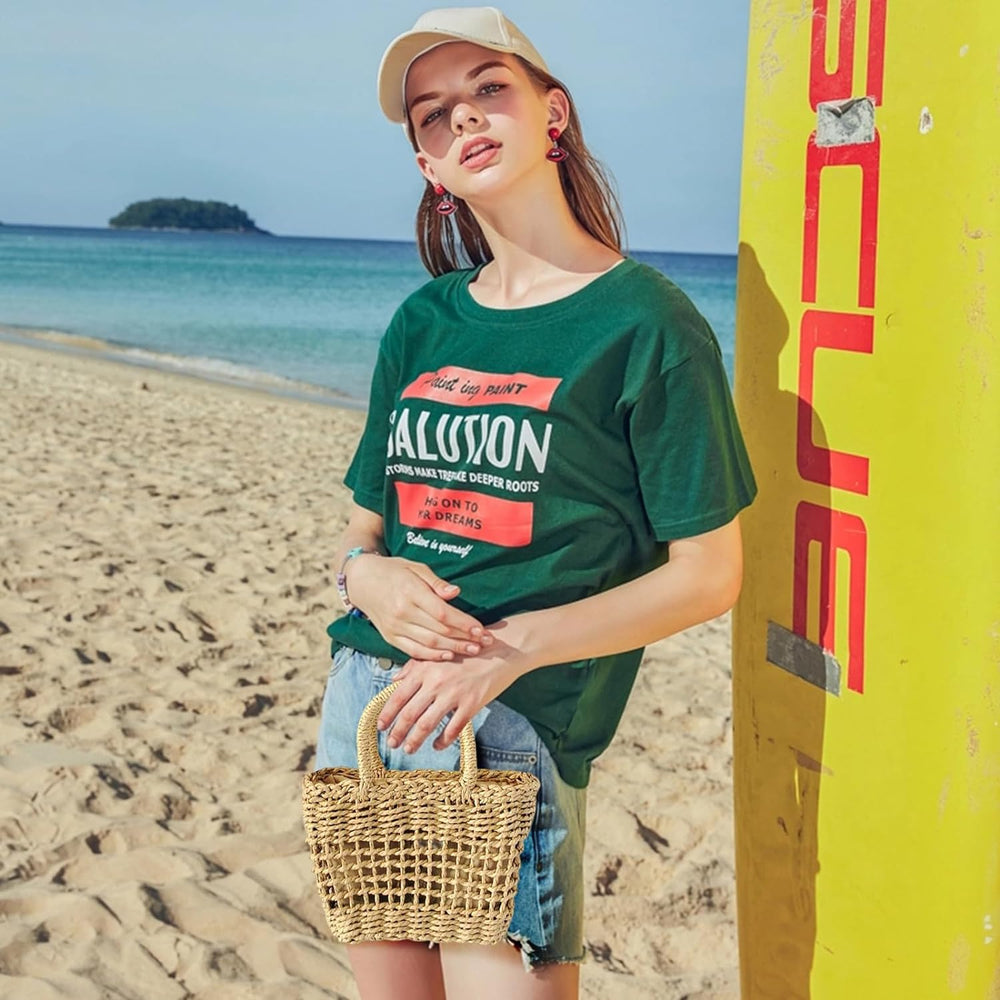 NICOLE & DORIS Handtasche Damen Umhängetasche Stroh Strandtasche Klein Handy Tasche Gewebte Strandta