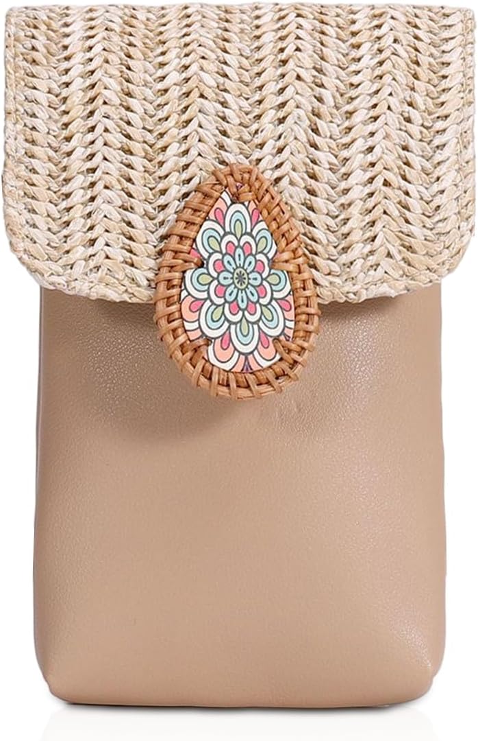 NICOLE & DORIS Damen Handytasche Zum Umhängen Klein Handy Schultertasche Stroh+PU Leder Handy Tasche