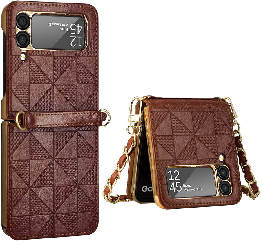 Hülle für Galaxy Z Flip 3 5G,Ultradünne Stossfeste Leder-Handyhülle mit Schultergurt kompatibel mit