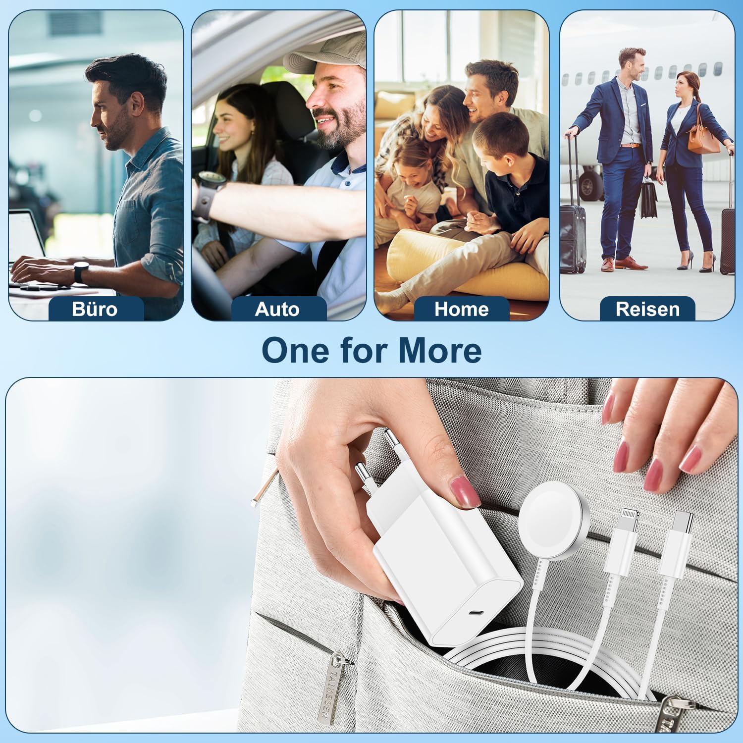 - 【Superior Safety Fast Charging】Das neueste Design des Apple-Uhrenladegeräts mit 3-in-1-Typ-C-Anschluss und kommt mit Uhrenladegerät, Typ-C-, Lightning Anschlüssen. Kann gleichzeitig Ihre iWatch, Ihr iPhone, Ihr iPad und Ihr Headset aufladen. Das